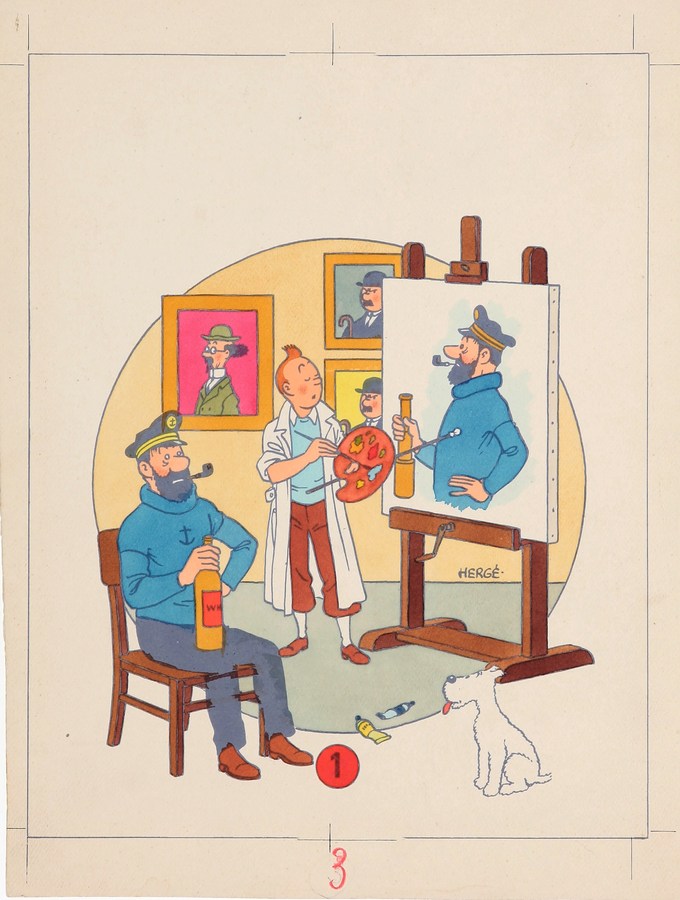 Signalons enfin une jolie mise en couleur à l’aquarelle pour une couverture d’album à colorier Tintin & Milou, datant de la fin des années 1940. Estimée à 500-600 euros, cette œuvre – que l’on doit peut-être au coloriste Guy Dessicy – s’est finalement envolée à 1 800 euros !