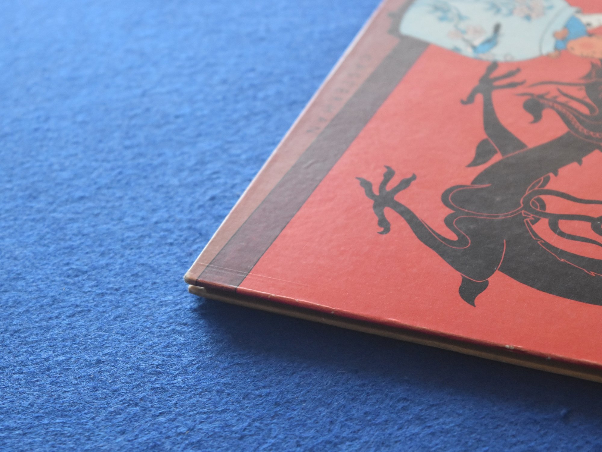 Réédition du Lotus Bleu de 1960, 4ème plat B29, dos Pellior Jaune, Pages de garde bleu clair,