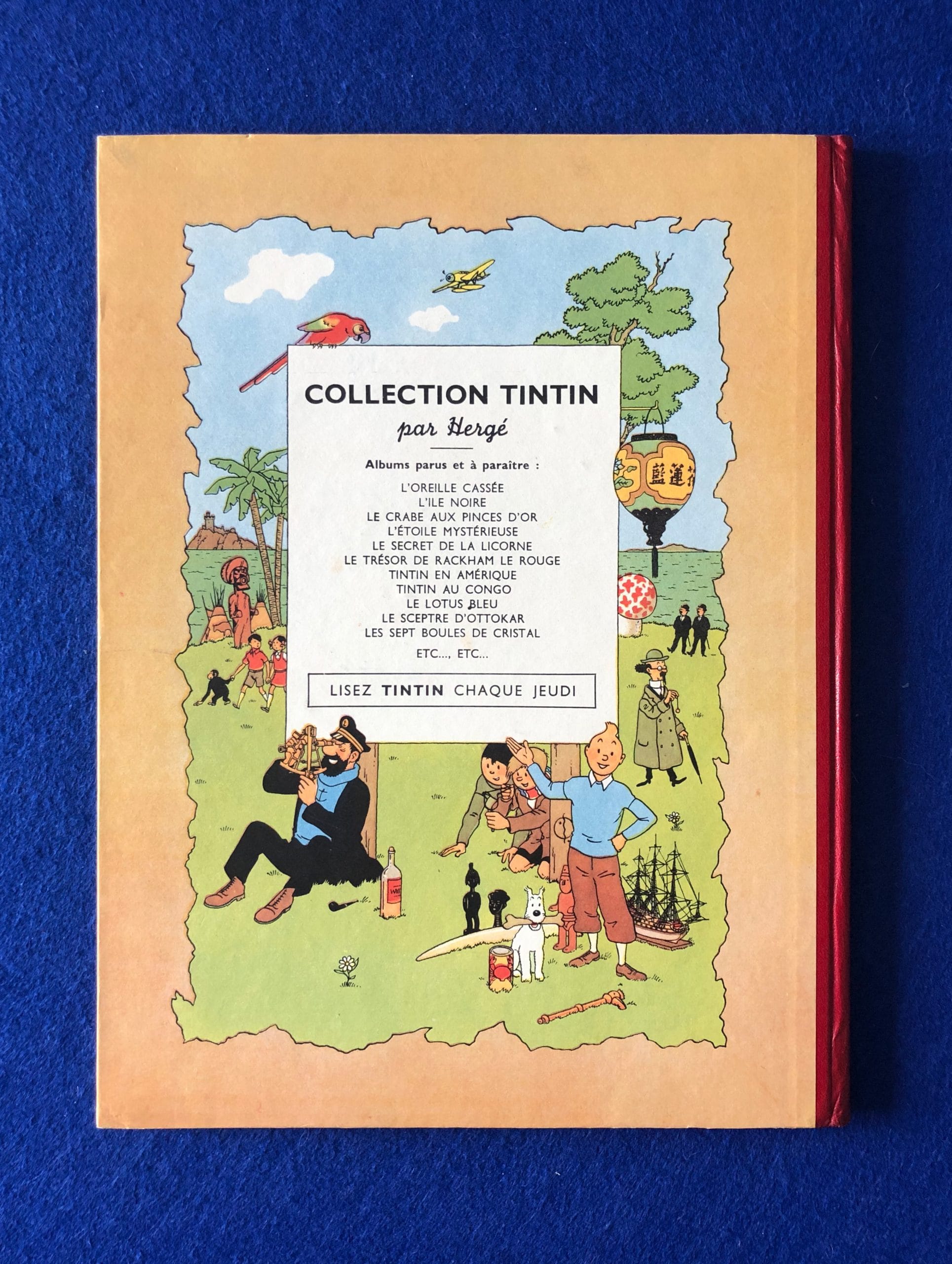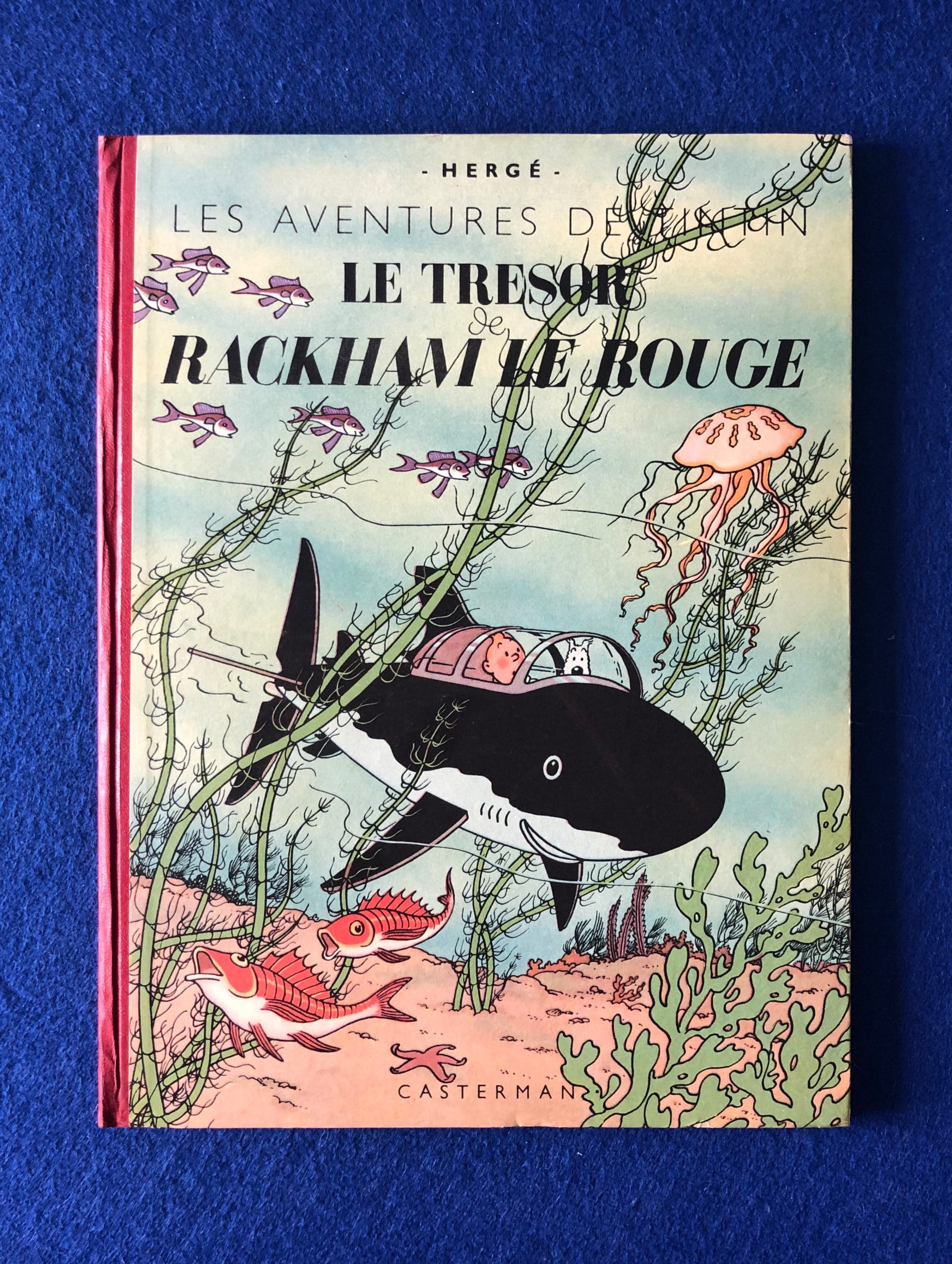 Réédition du Trésor de Rackham le Rouge de 1947, 4ème plat B2, Titre en Rouge en page 1, page de garde bleu foncé, imprimé en Belgique.