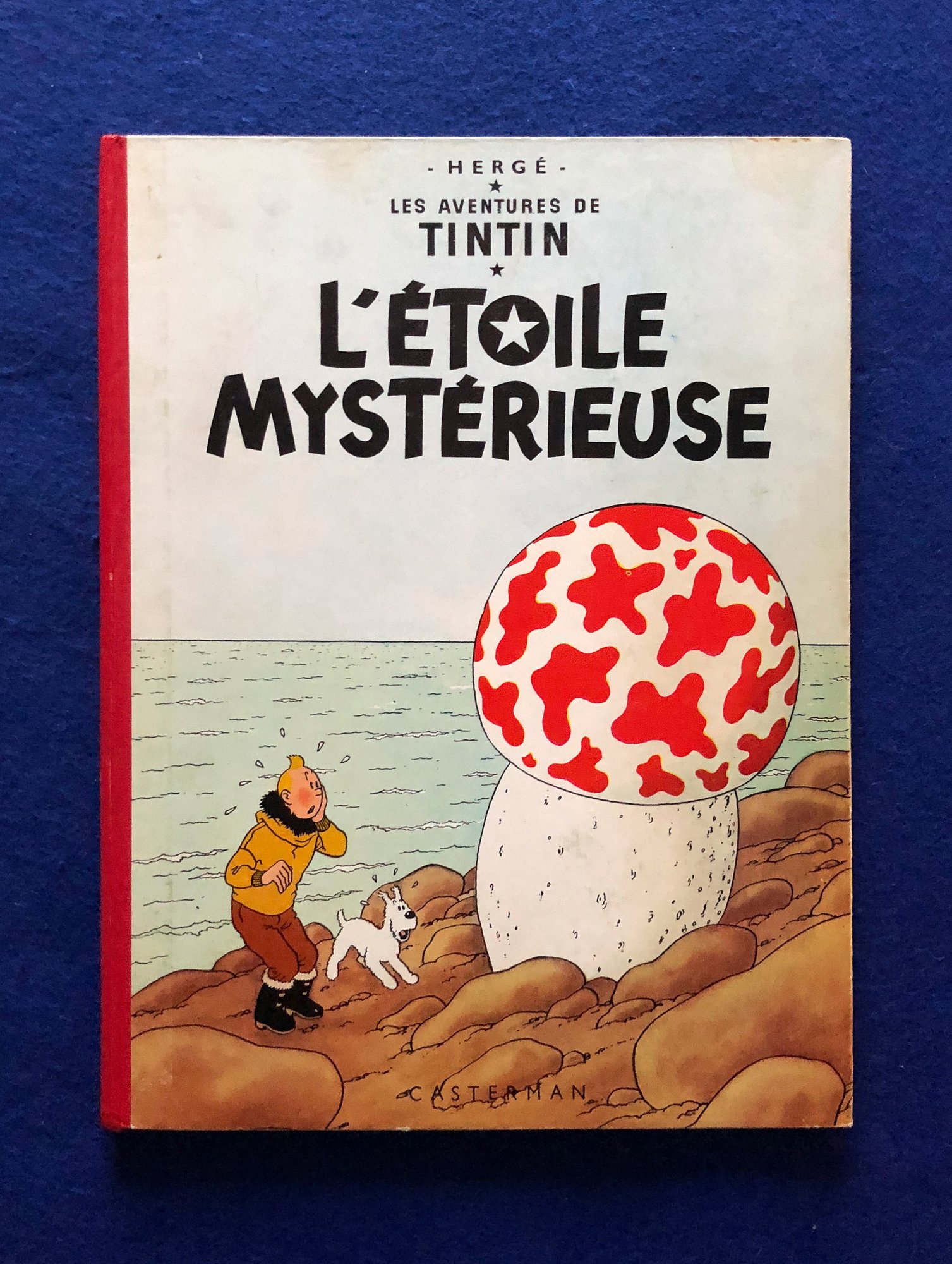 Réédition de L’Etoile Mystérieuse de 1961, 4ème plat B30, dos Pellior Rouge, Pages de garde bleu clair, imprimé en Belgique.