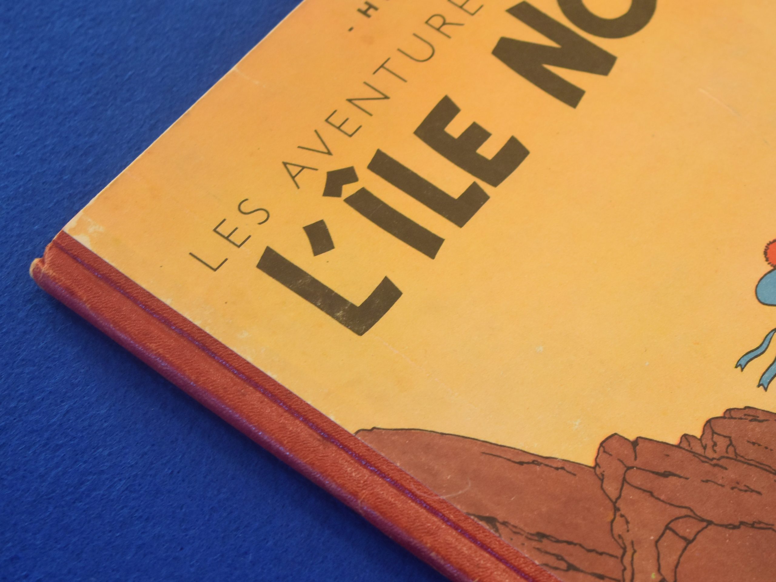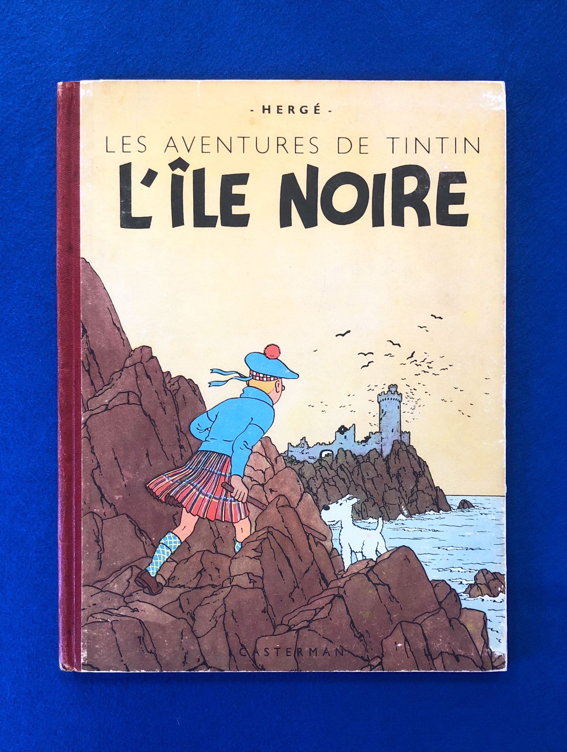 Edition Originale de L’ile Noire de 1943, 4ème plat A20, dos Pellior Rouge, Pages de garde bleu foncé, Numéro d’autorisation : n° 1785 – 1786 – 1787.