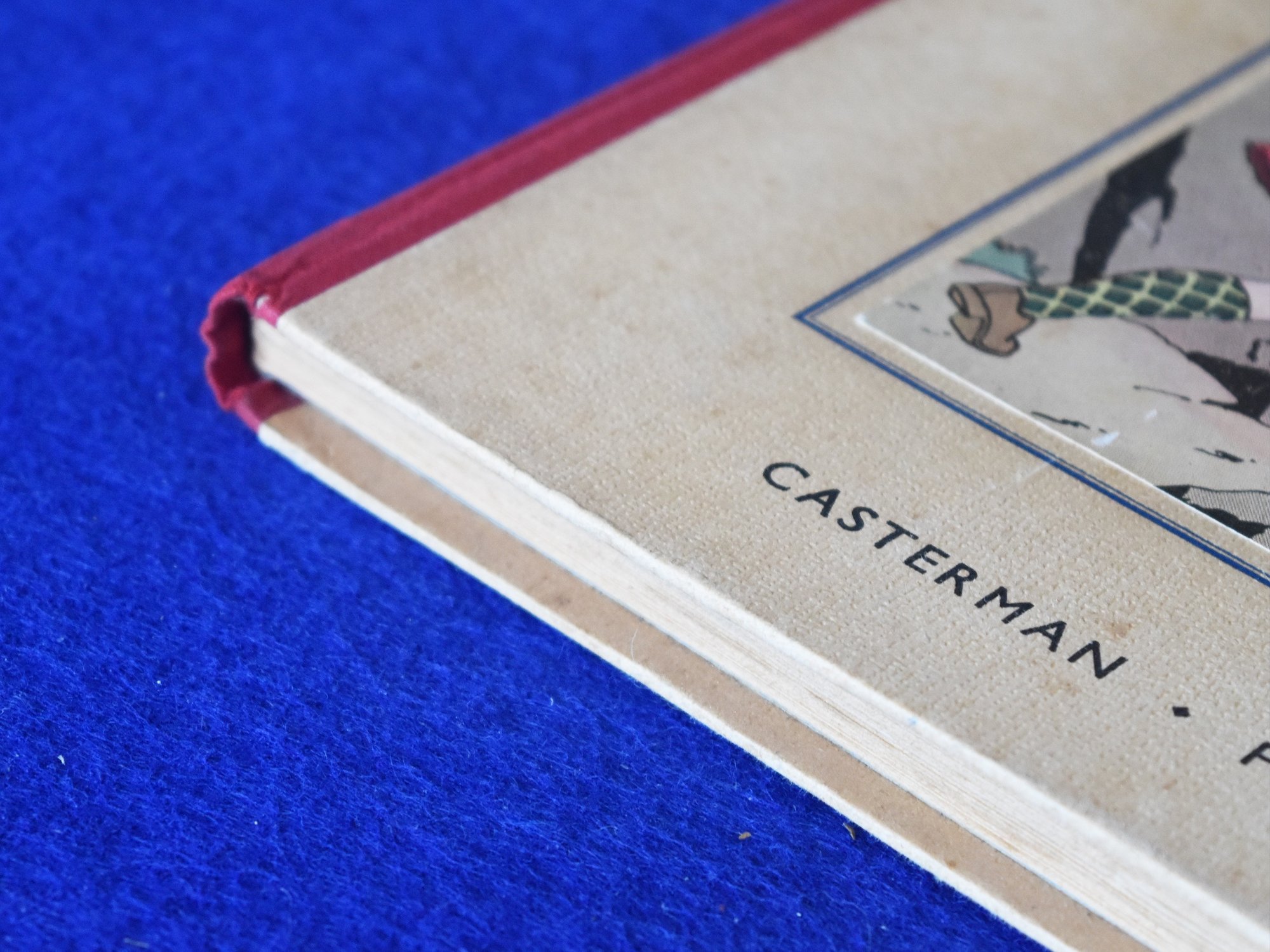 en tissu Rouge, Pages de garde bleu foncé, Imprimé en Belgique.