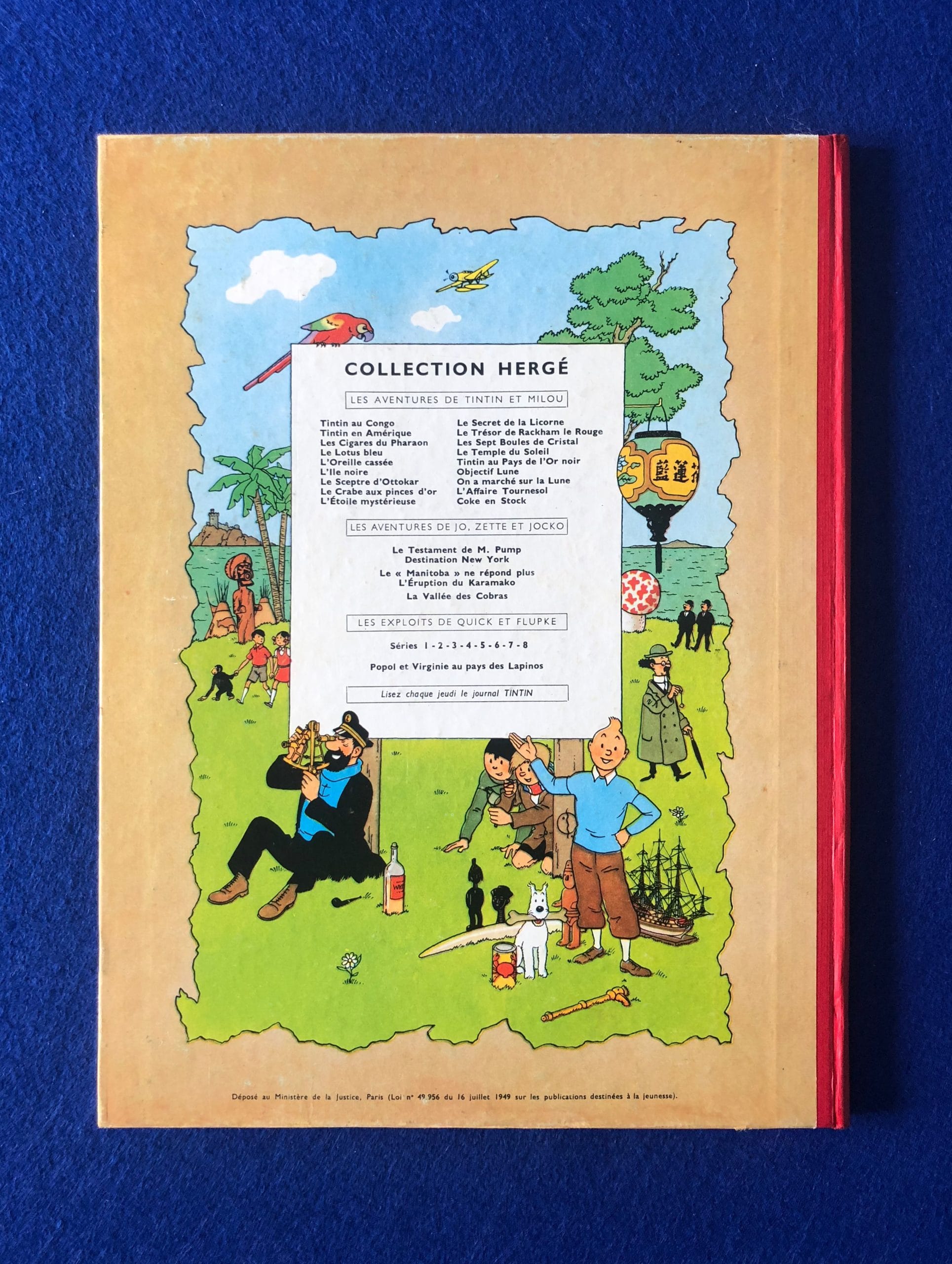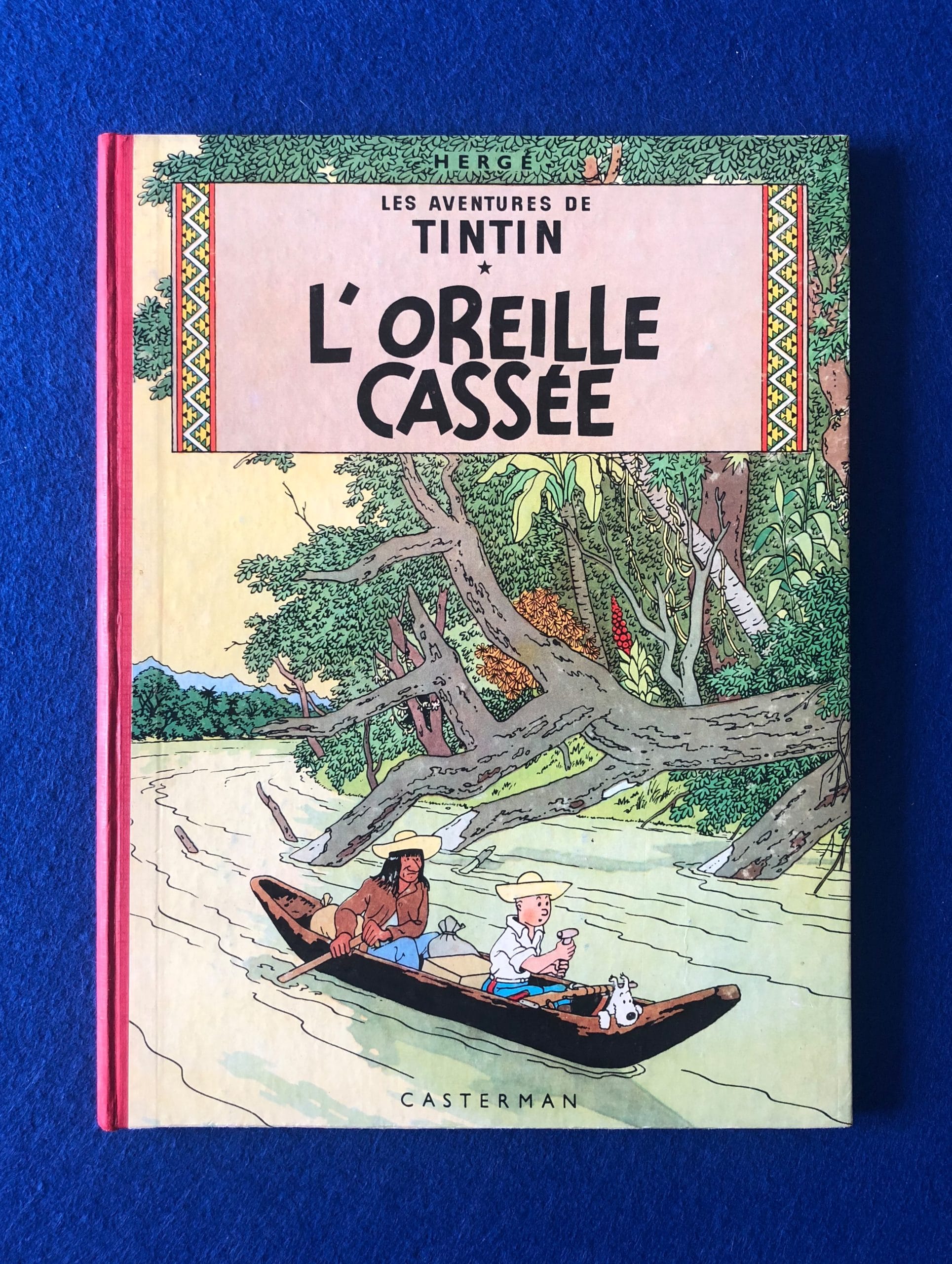 Réédition de L’Oreille Cassée de 1958, 4ème plat B24, dos Rouge, Pages de garde bleu claire, imprimé en Belgique.