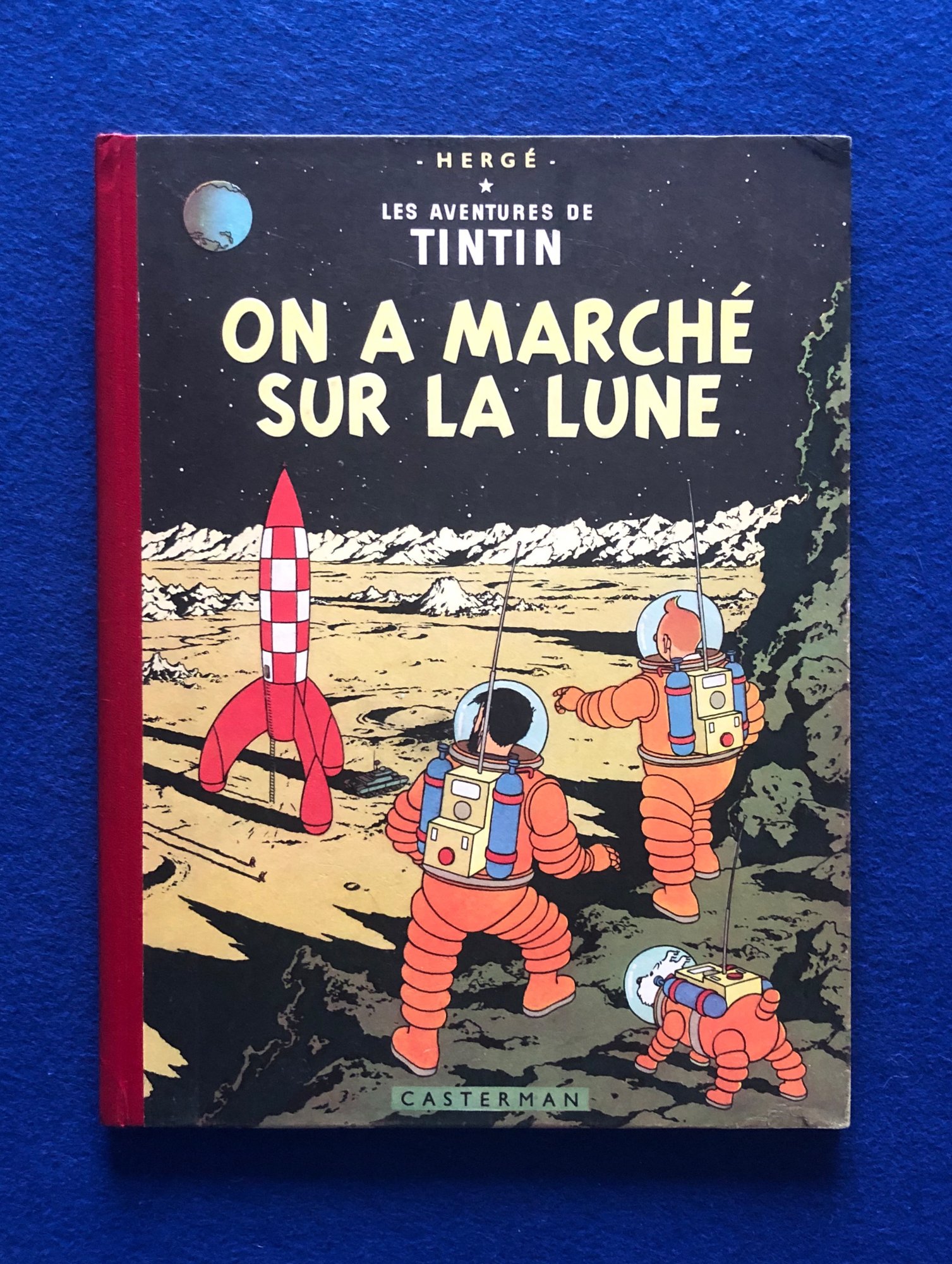 Réédition française du 3ème Trimestre 1954, Couverture mate, 4ème plat B11, Imprimerie Danel n°474, Dos pellior rouge, Pages de garde bleu foncé.