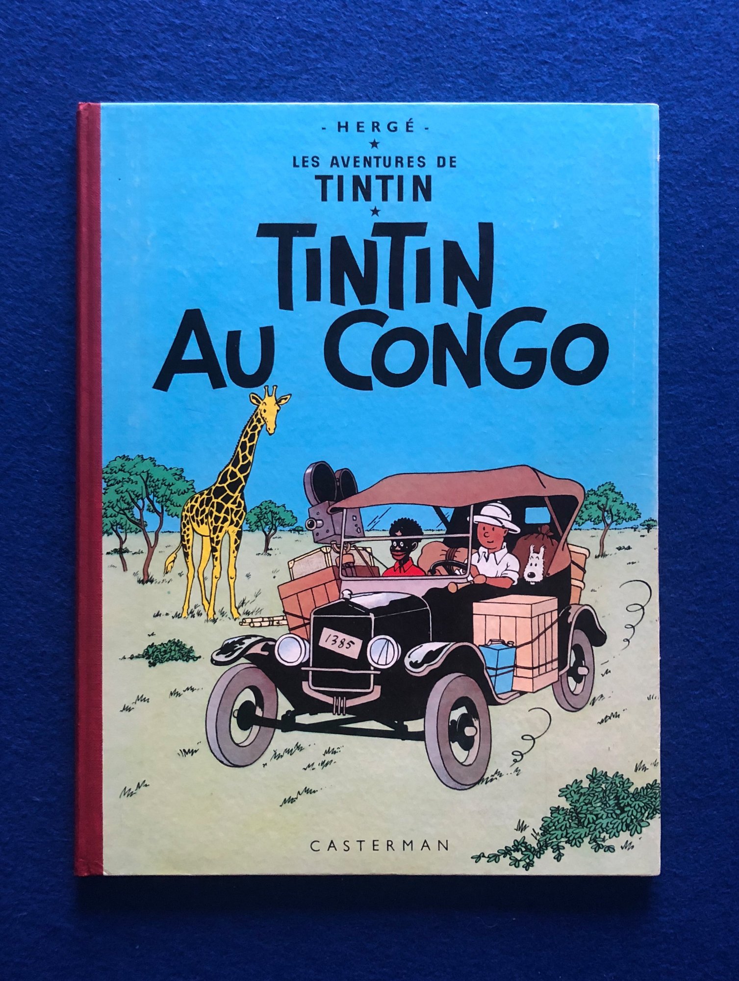 Réédition Française de Tintin au Congo du 2ème trimestre 1962, 4ème plat B31, dos Pellior Rouge, Pages de garde bleu claire, imprimerie Léonard Danel, n° 3713.