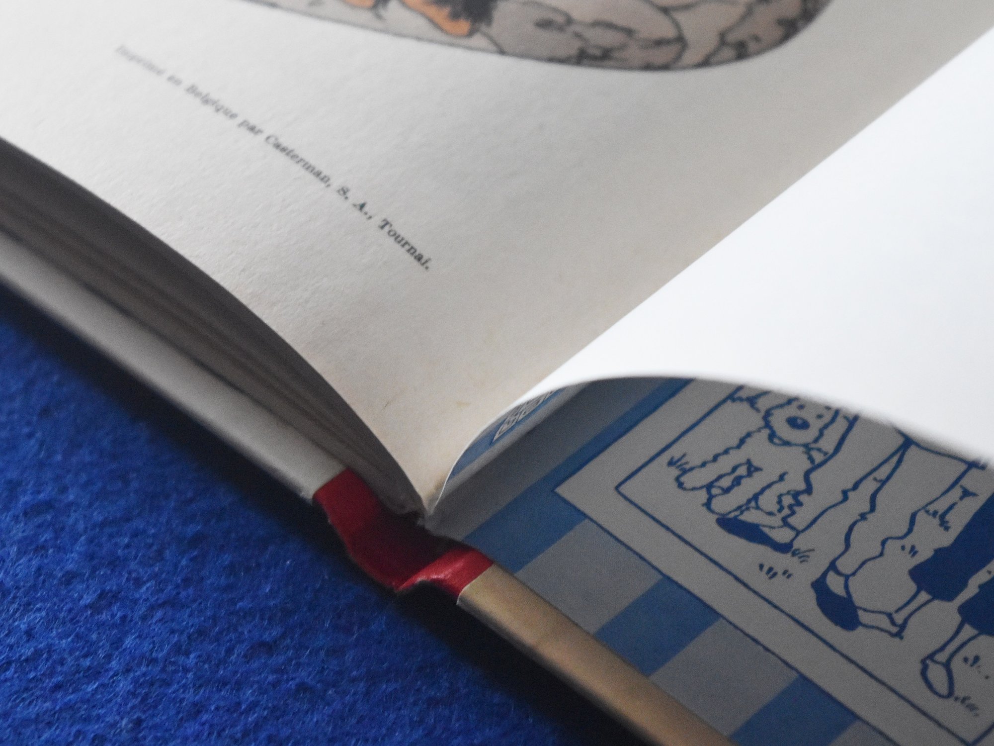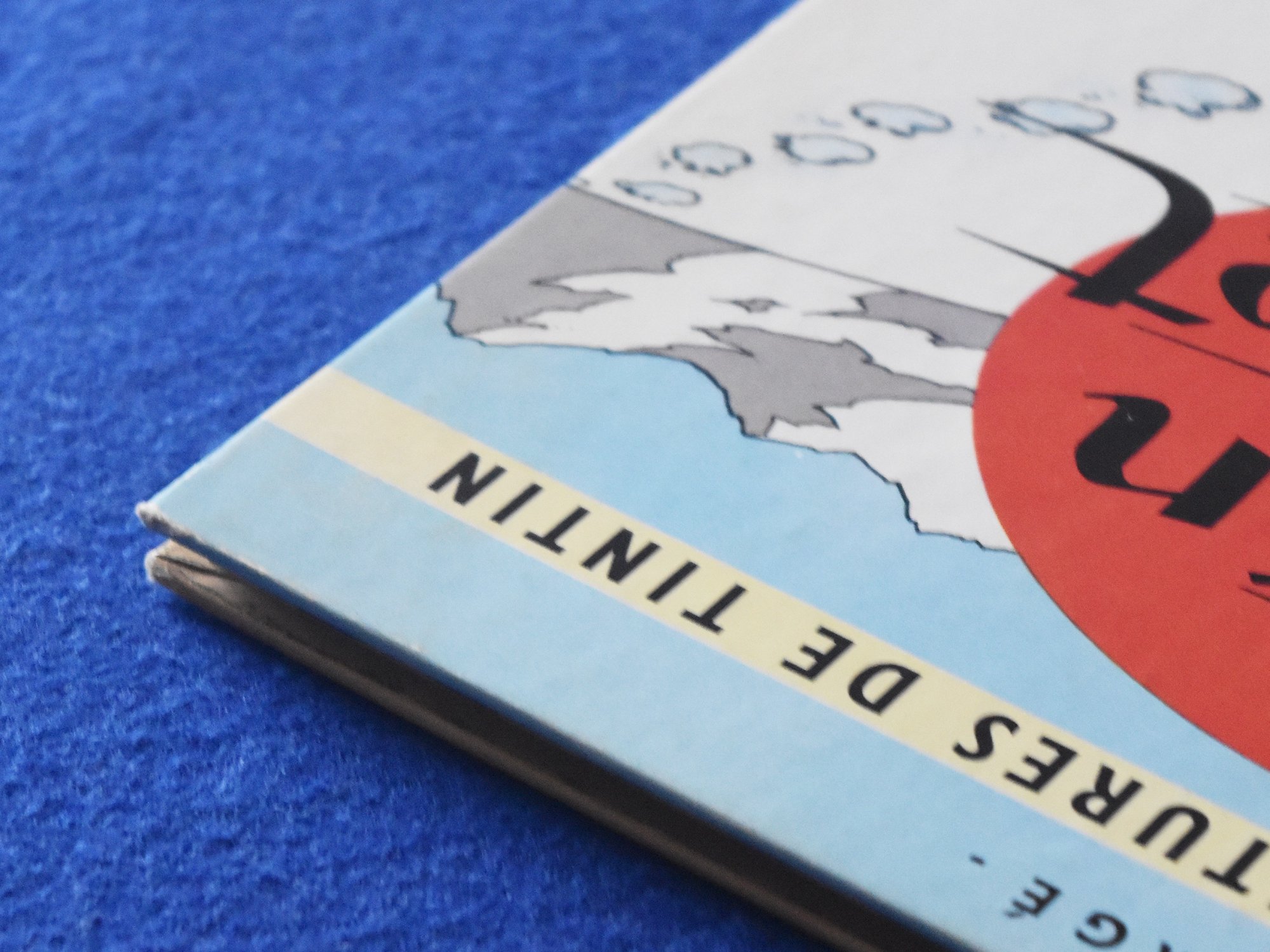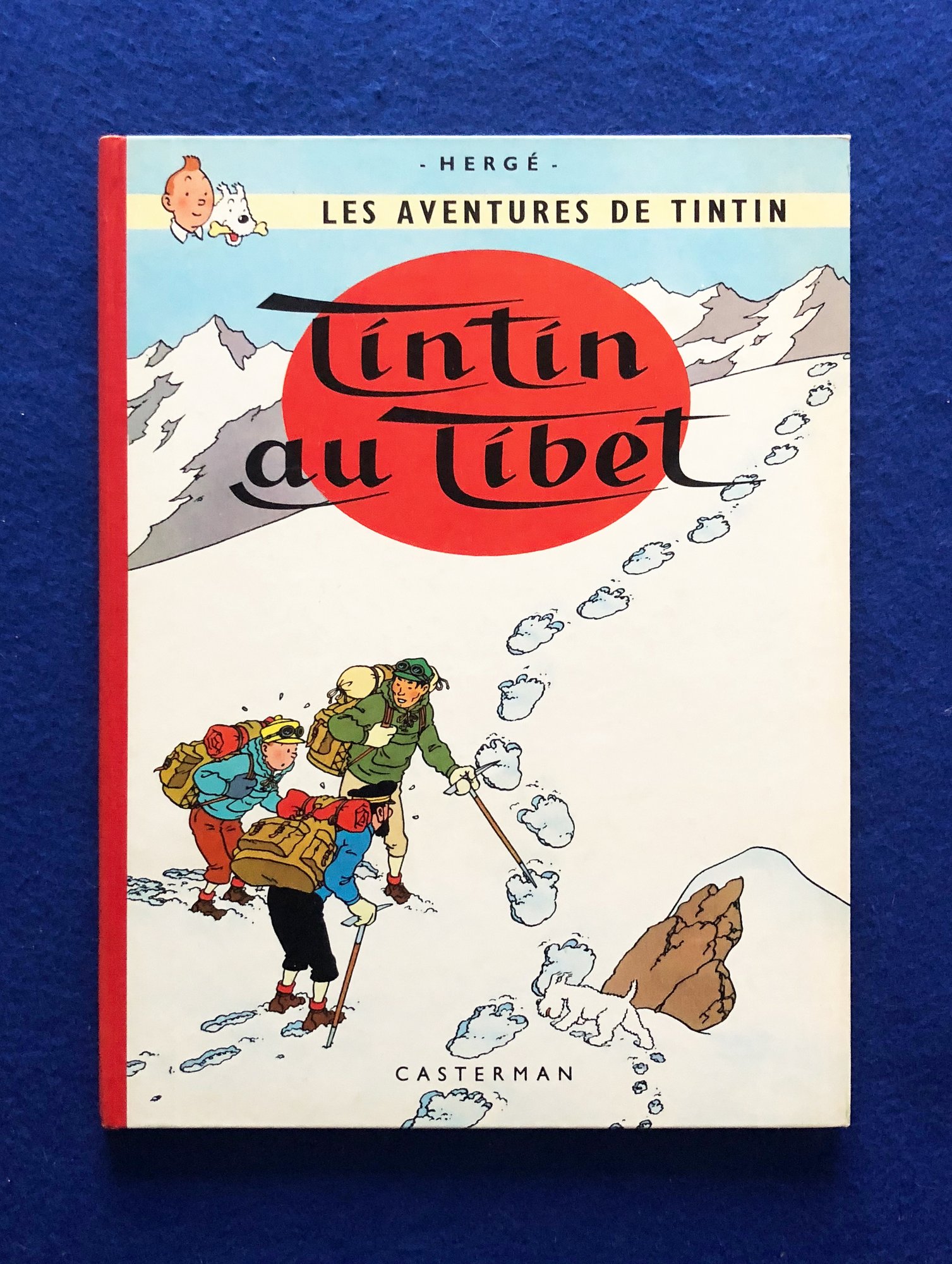 Réédition de Tintin au Tibet de 1964, 4ème plat B35, dos Rouge, page de garde bleu claire, imprimé en Belgique.