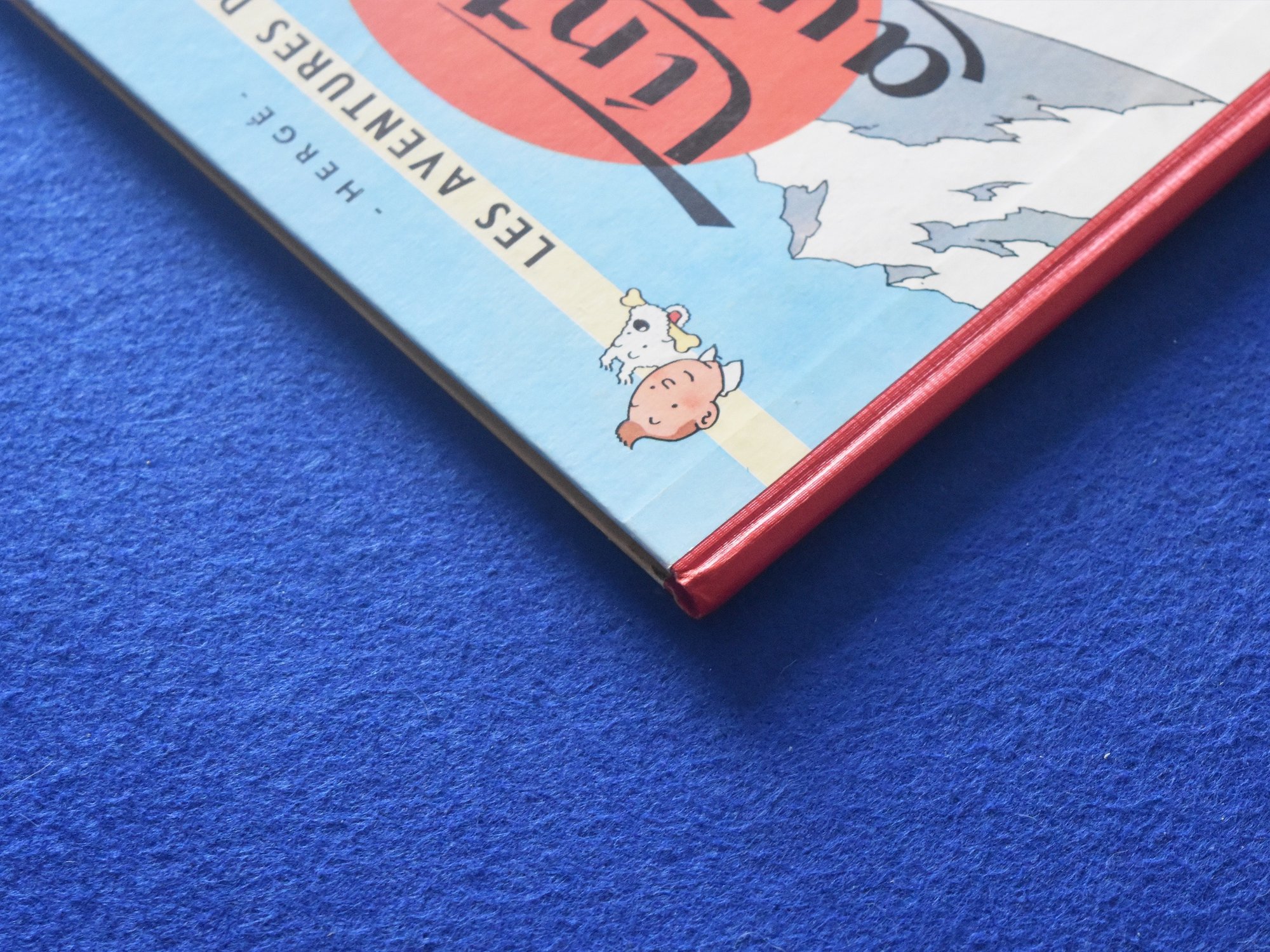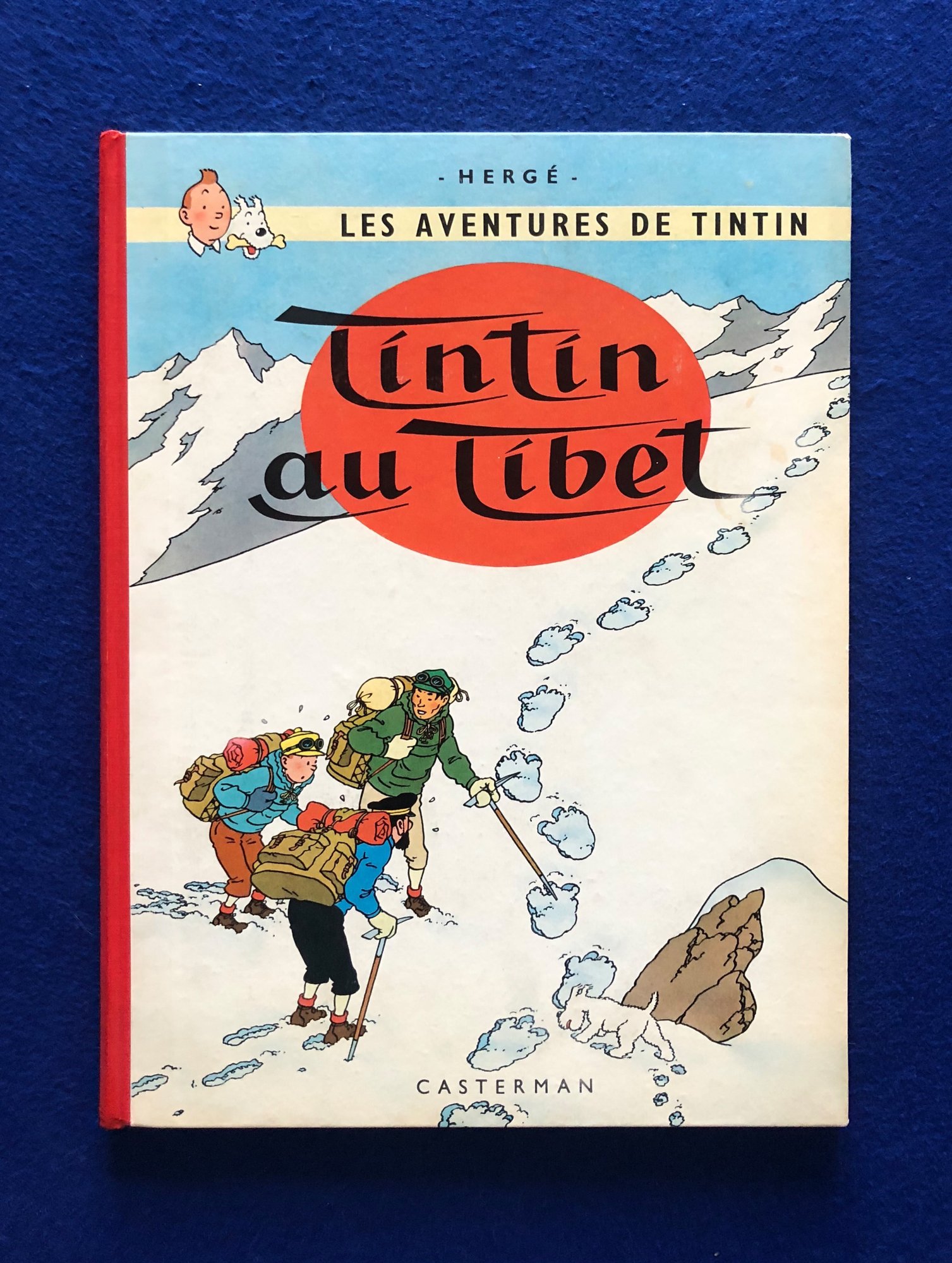 Réédition de Tintin au Tibet de 1963, 4ème plat B34, dos Rouge, Pages de garde bleu claire, imprimé en Belgique.